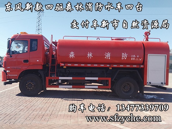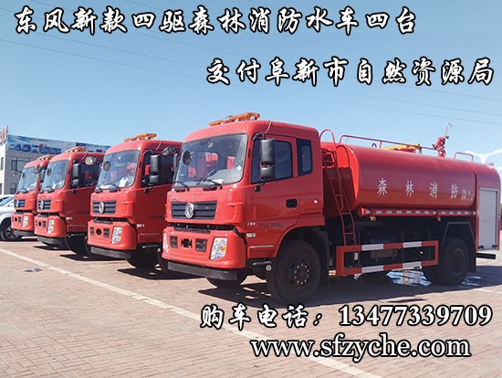 遼寧省阜新市自然資源局下屬的林業(yè)和草原局森林防火辦公室采購的東風(fēng)新款四驅(qū)森林消防水罐車具體參數(shù):東風(fēng)四驅(qū)越野森林消防水罐車_東風(fēng)11.1噸四驅(qū)消防水車_國五四驅(qū)越野森林滅火水車_東風(fēng)4×4越野SCS5183GPSEQ型四驅(qū)綠化噴灑車簡介:采用東風(fēng)EQ2180GD5DJ型越野汽車底盤,東風(fēng)153寬體駕駛室(選裝D913新款駕駛室),4×4驅(qū)動,康明斯ISB190 50國五發(fā)動機,六檔變速箱,東風(fēng)商用車橋,前驅(qū)動橋3.8噸,后橋10噸,10.00R20輪胎,軸距4500mm,電動玻璃,方向助力,斷氣剎,ABS。罐體采用優(yōu)質(zhì)碳鋼Q235板材,板材厚度4mm,罐體容積11.1立方,安裝夾心取力器,后置泵箱,消防栓接口左右各一個,消防炮采用PS30-50D消防水炮,流量40L/S/1.0MPa 水射程:≥50m,消防泵采用常壓消防泵型號:CB10/40車用消防泵,流量:40L/s,壓力:1.0MPa,駕駛室頂部安裝長條警燈帶喊話器,全車顏色橘紅,兩側(cè)噴涂白色森林消防字樣。