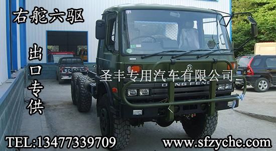 東風(fēng)右舵出口專供六驅(qū)越野卡車,可在此底盤(pán)基礎(chǔ)上改裝右舵越野油罐車,右舵越野灑水車,右舵越野廂式車,右舵越野冷藏車,右舵越野自卸車,右舵越野隨車吊等各種特種作業(yè)專用車型。