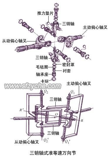 三銷軸式萬向節(jié)的特點是保證兩軸角速度接近相等;允許相鄰兩軸有較大的交角,最大可達45°,可使汽車獲得較小的轉彎半徑,提高汽車的機動性。這種萬向節(jié)的缺點是所占空間較大。優(yōu)點:允許相鄰兩軸間有較大的夾角,用于一些越野車的轉向驅動橋。如需了解更多軍車配件工作原理m.ganxi323.com