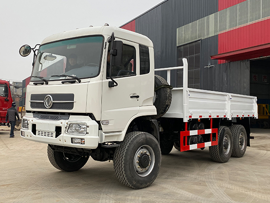 東風天錦六驅沙漠車配置:東風天錦D530一排半駕駛室?guī)Э照{,6×6驅動,康明斯ISDe270 30,國三排放標準發(fā)動機,法士特8JS118變速箱,ZQC1200(機械式)分動箱,前橋6噸,10噸雙后橋,大江車橋輪邊減速,12.5R20越野輪胎帶備胎,軸距4100+1300mm,大梁280mm,電動玻璃,方向助力,斷氣剎,大箱尺寸5300×2400×600mm,底板采用4mm花紋板。